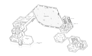 In this project i tried different type of creation process. So that, the shaping of the masses in the project and deciding their orientation have developed with the design and hegzogonal pattern sheet. Hexagonal and triangular forms in the pattern has been tried to be reflected in the design phase of the project.Especially, library and gift shop where stands for the mass reflects the pattern's form.